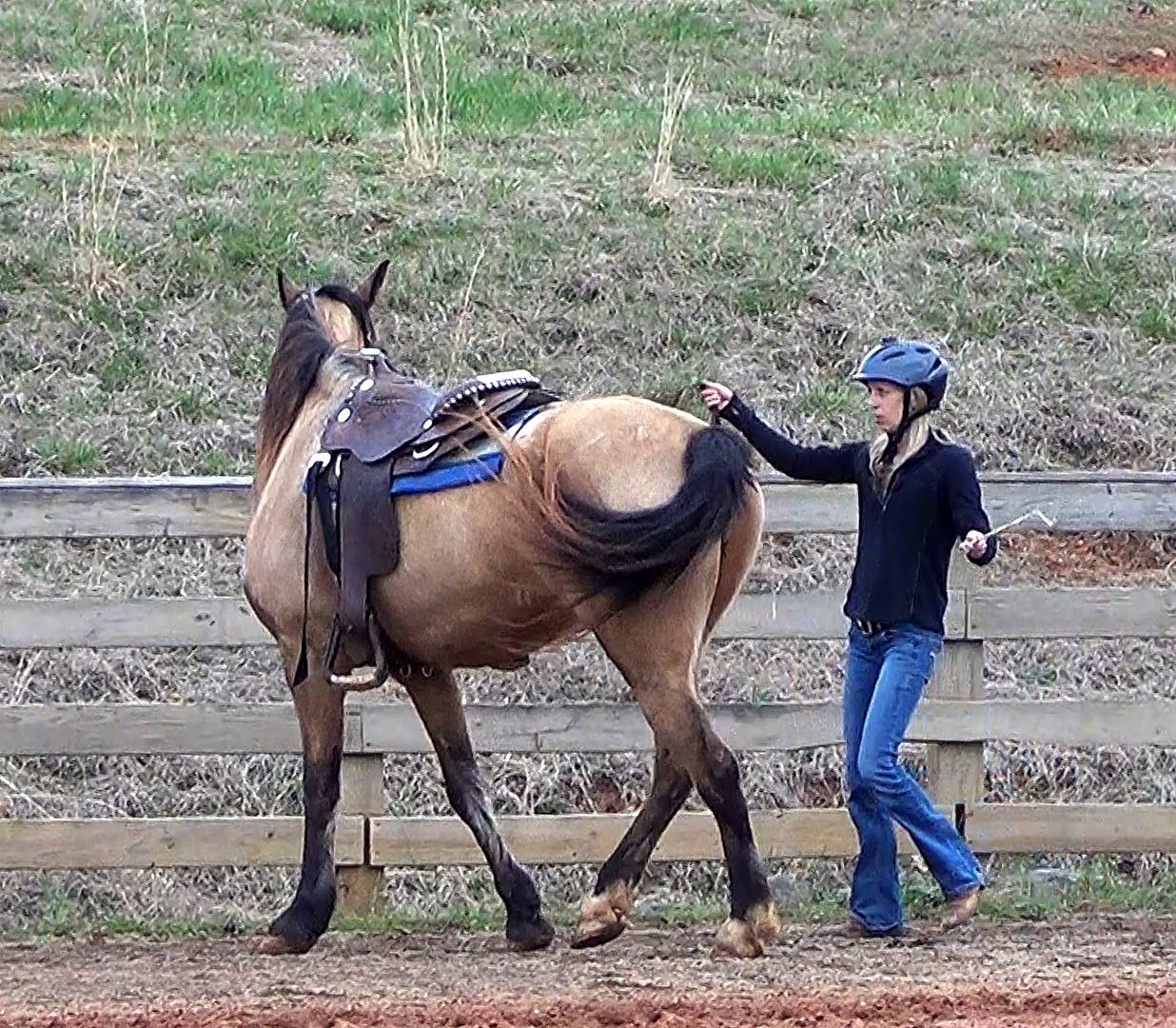 leg yield along the fenceApril 1, 20151236 × 10802015 Jennie Jackson Clinic Jennie Jackson taught students how to work gaited and trotting horses in hand to teach leg yield before riding the exercise.
